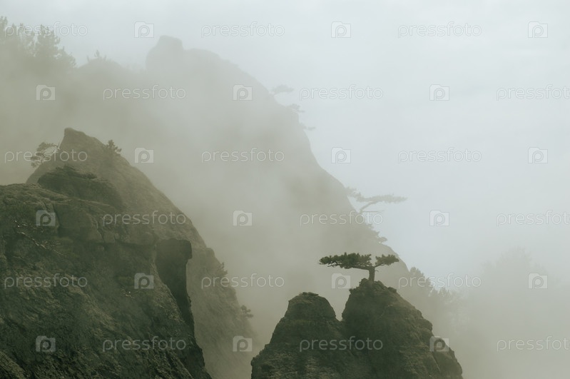 Вид на туманные горы в Крыму, Украина