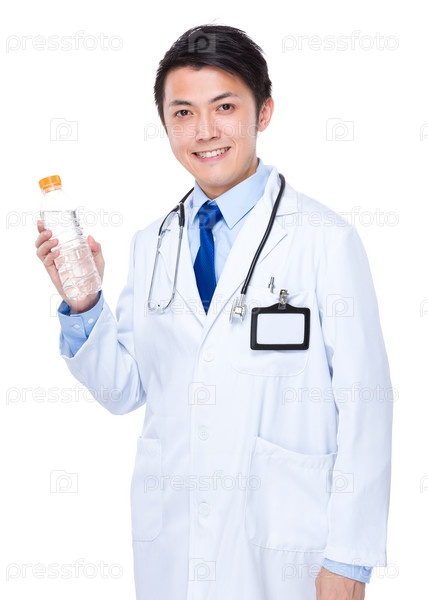 Доктор с бутылкой питьевой воды