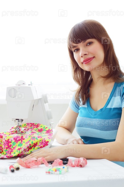 Девушка работает на швейной машине