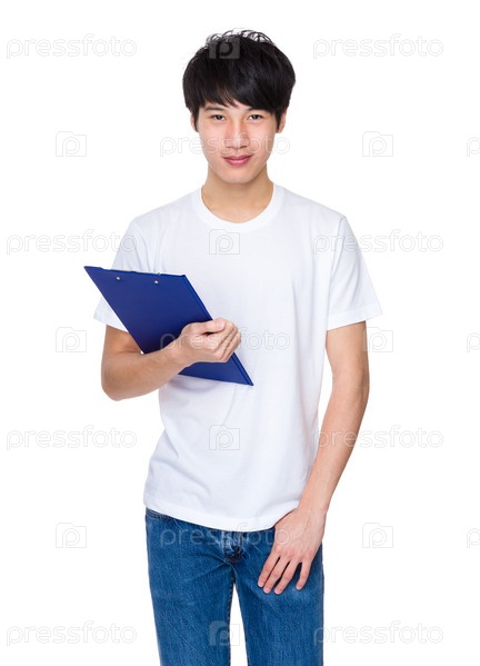 Молодой человек с папкой-планшетом