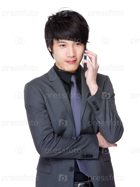Молодой бизнесмен говорит по телефону