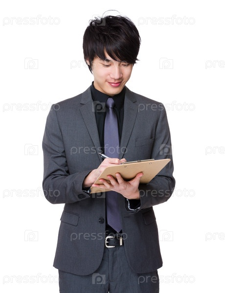 Молодой бизнесмен делает записи