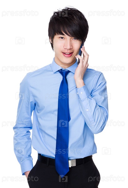 Молодой бизнесмен говорит по телефону
