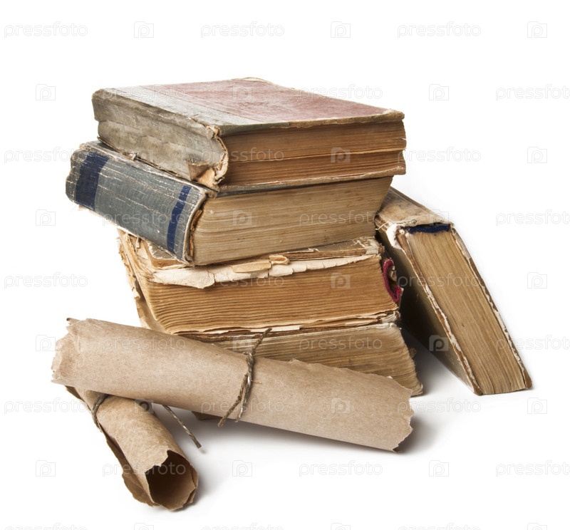 Стопка старых книг на белом фоне