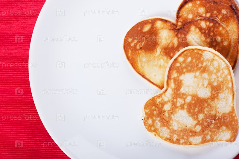 Блины в форме сердца на тарелке