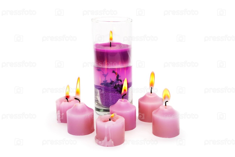 Розовые горящие свечи на белом фоне
