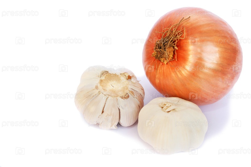 Лук и чеснок на белом фоне