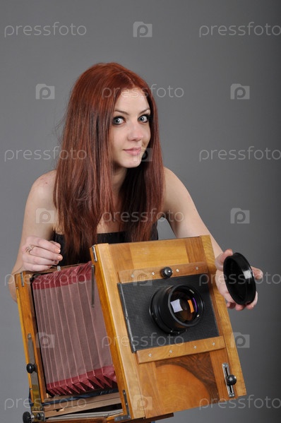 Девушка с винтажной фотокамерой