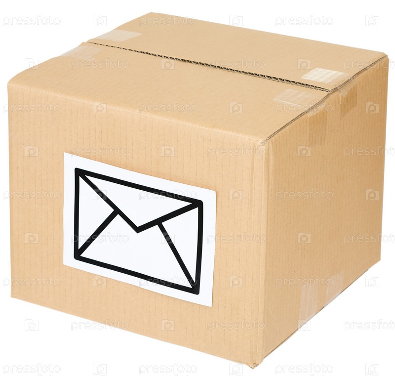 Картонная коробка с почтовым знаком на белом