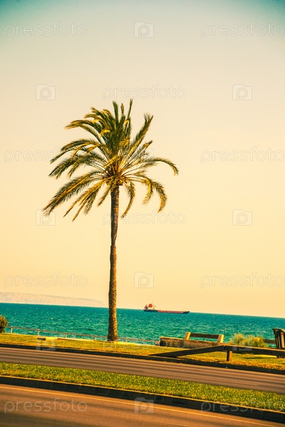 Пальмовые деревья вдоль побережья в Пальма-де-Майорка