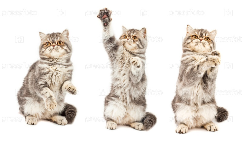 Экзотический короткошерстный котенок голубого цвета в разных позах