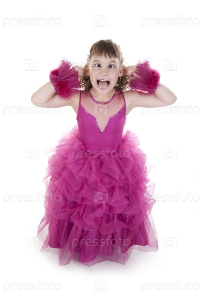 Девочка - принцесса в розовом платье на белом фоне