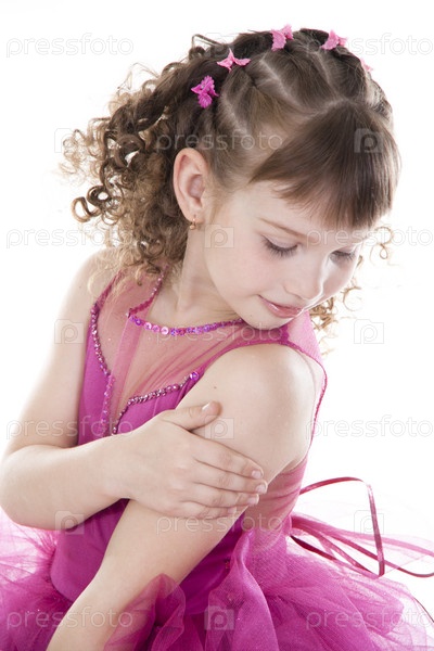 Девочка - принцесса в розовом платье на белом фоне