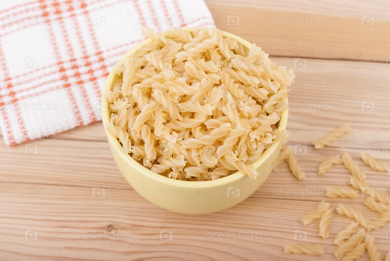 Макароны в тарелке на деревяном столе