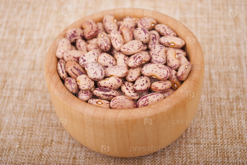 Фасоль в тарелке на скатерти