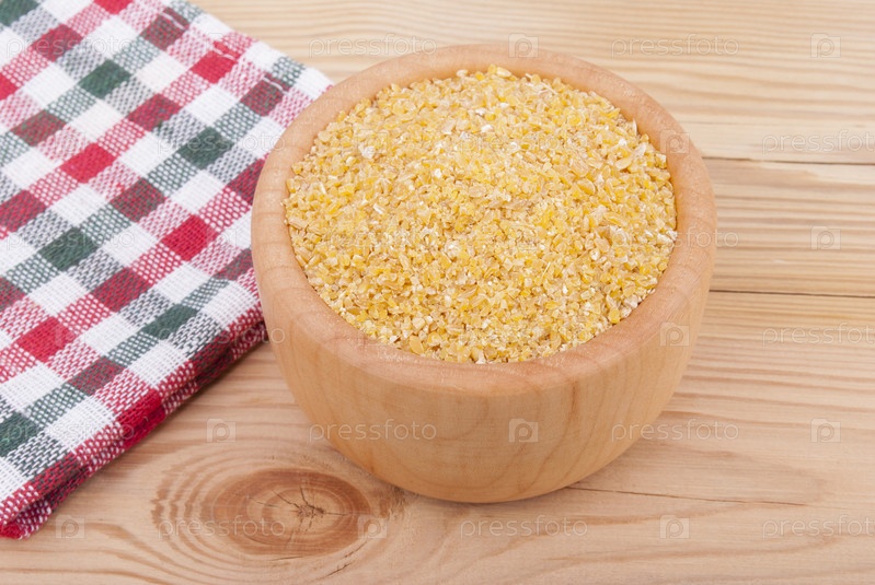 Пшеничная крупа в тарелке на столе