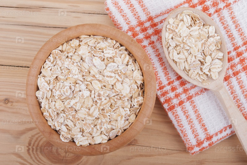 Деревянная тарелка с овсяными хлопьями