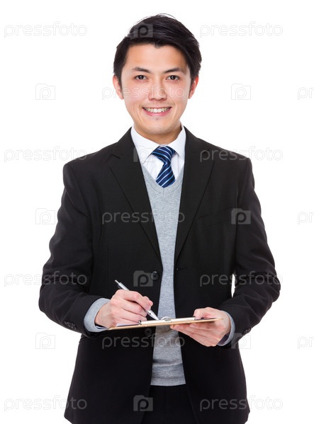 Бизнесмен делает записи