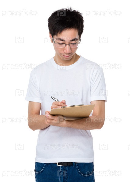 Молодой человек делает записи