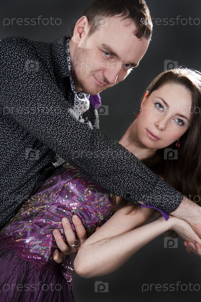 Молодая пара в вечерних нарядах на темном фоне