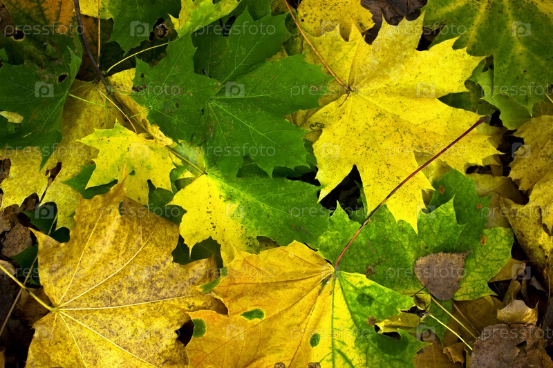Яркие цветные опавшие листья, лежащим на дороге в парке