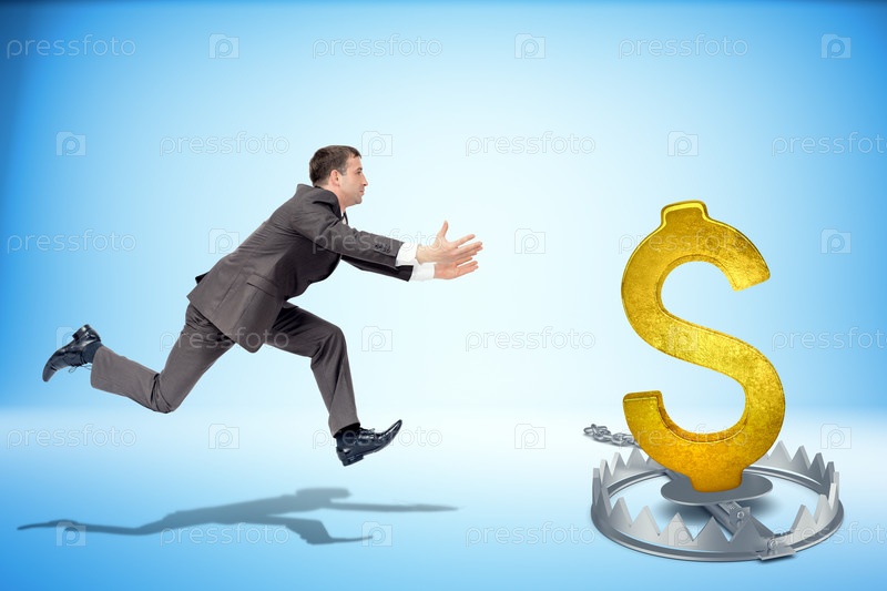Бизнесмен, забегая вперед для знака доллара