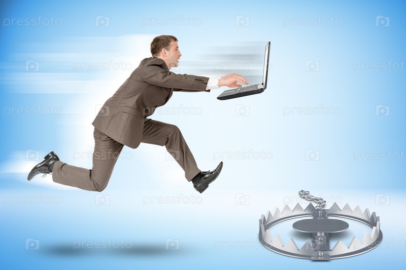 Бизнесмен с ноутбуком, забегая вперед