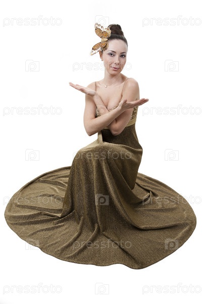 Красивая женщина в праздничной одежде - на белом фоне