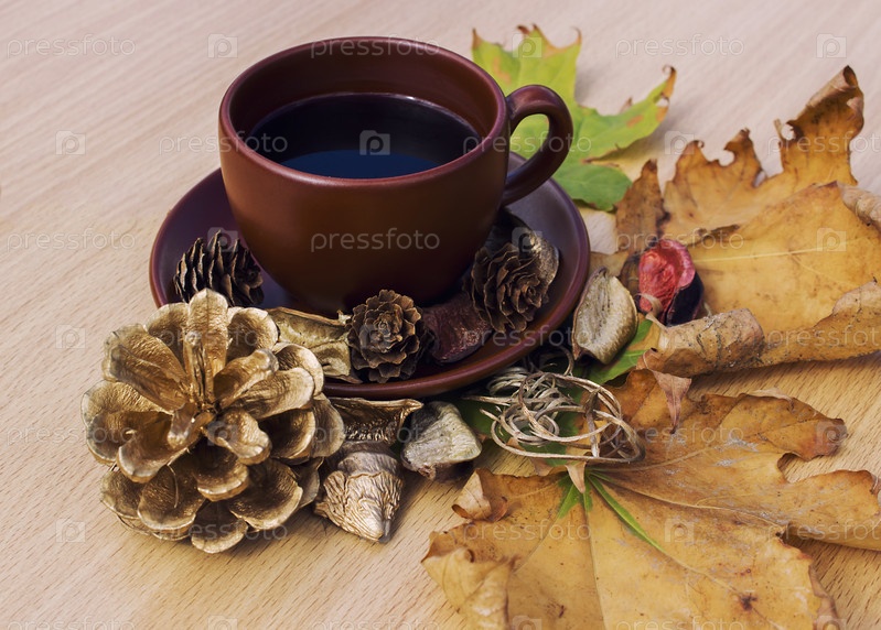 Ароматических свежий кофе на столе с осенние украшения
