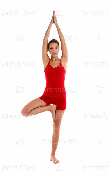 Молодая красивая девушка, занимающаяся йогой на белом фоне