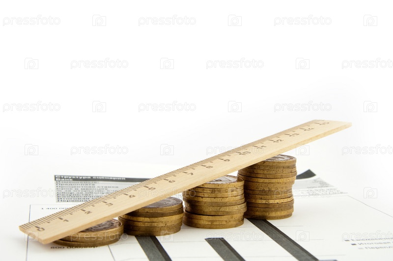 Монеты и линейка на фоне графиков