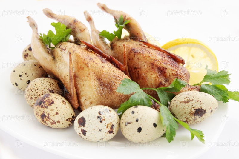 Перепелка, запеченная с лимоном и яйцами