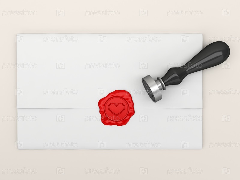 Письмо, скрепленное печатью с сердцем. Идеально подходит для открытки на день Святого Валентина, свадьба, или на другую любовную тему