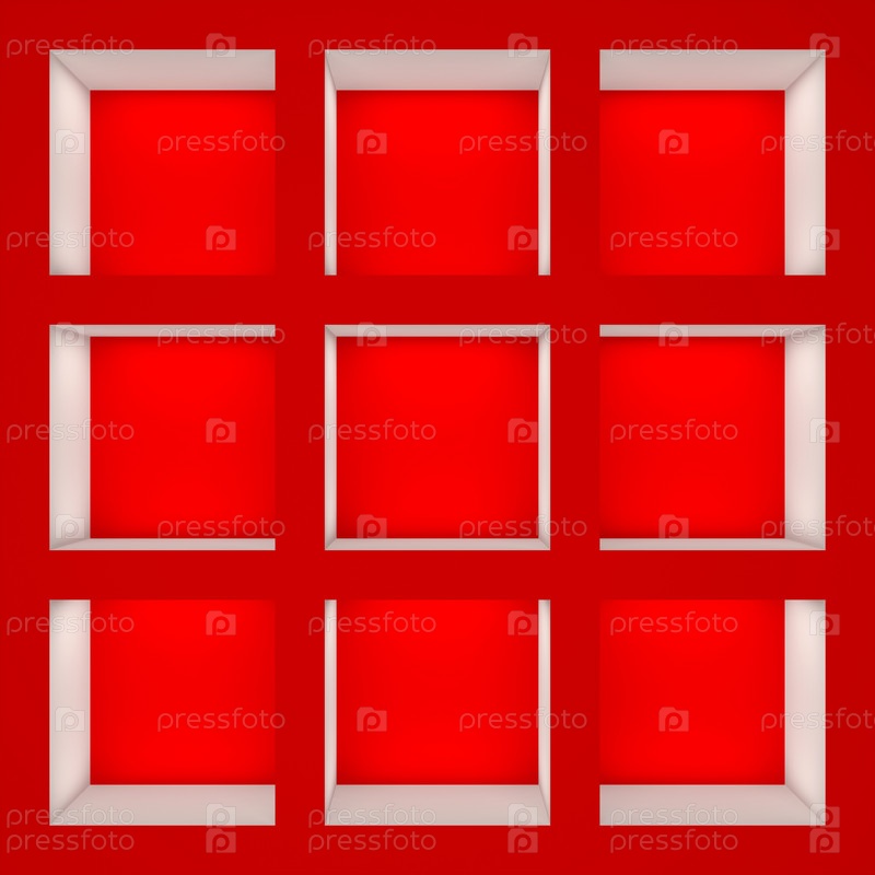 Пустой красно белый стеллаж с полками