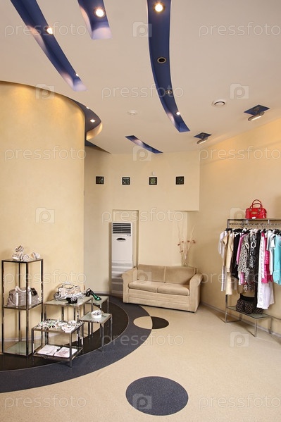 Интерьер большого магазина модной одежды
