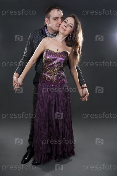 Отношения влюбленных в торжественной одежде на черном фоне