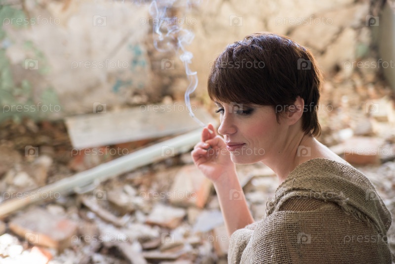 Девушка в заброшенном здании