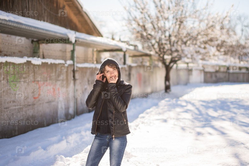 Молодая девушка прогуливается в зимний период
