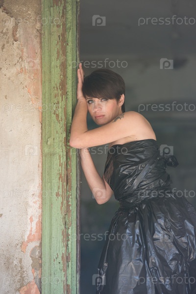 Милая девушка в заброшенном здании