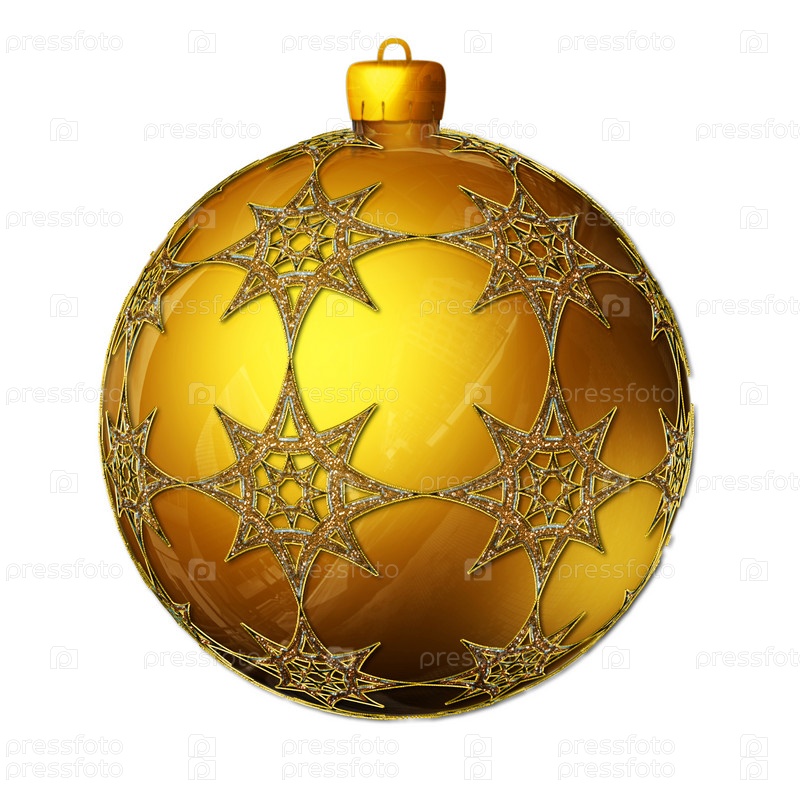 Позолоченный новогодний шар с узором на белом фоне