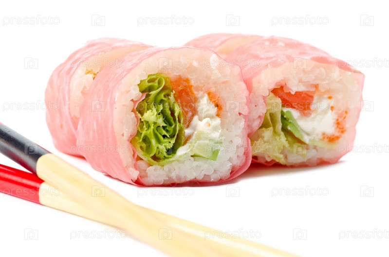 Суши на белом фоне с палочками