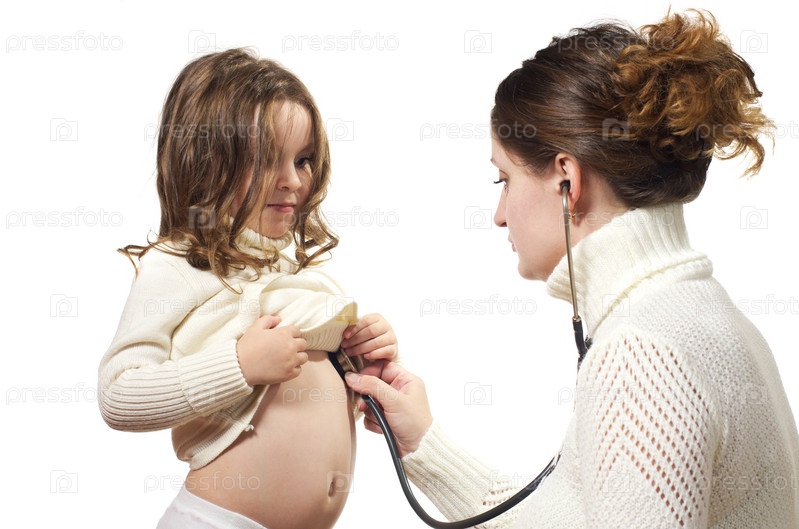Мама слушает свою дочку стетоскопом
