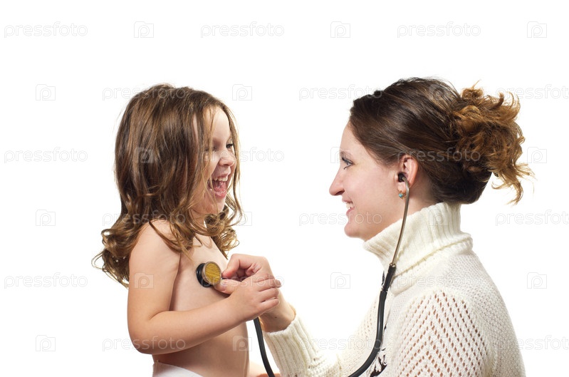 Мама слушает свою дочку стетоскопом