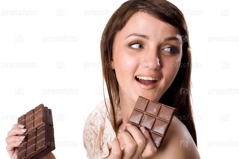 Девушка с плитками шоколада