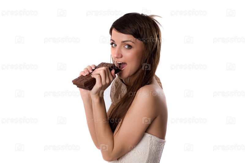 Девушка с плитками шоколада