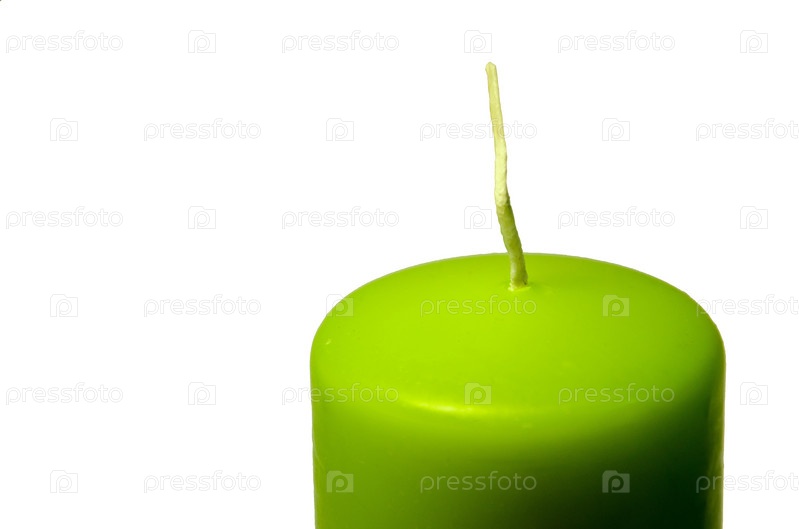 Зеленая свеча на белом фоне