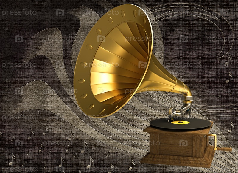 Золотой граммофон на темном фоне