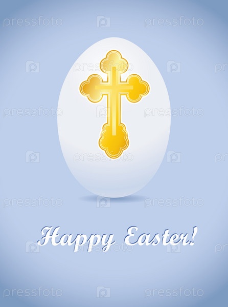Пасхальная иллюстрация с белым яичком и золотым крестиком
