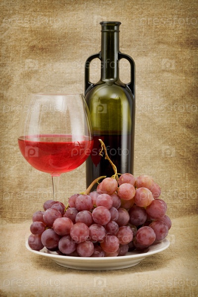 Натюрм с зеленой бутылкой, кубком и виноградом