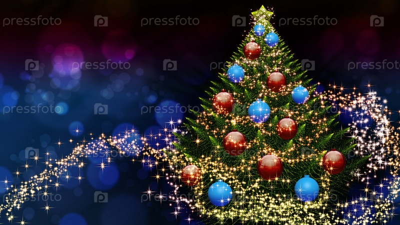 Новогодняя елка на темном фоне, праздничная иллюстрация